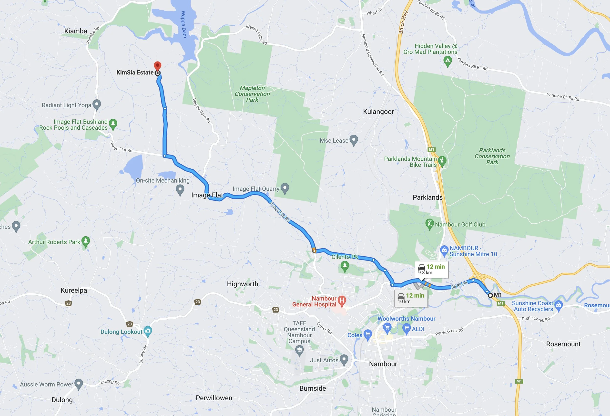 Come Over the Hill and continue on for 4kms past Nambour Hospital